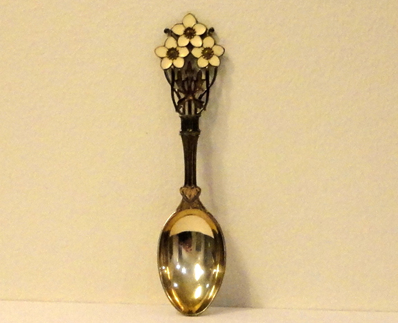 Dr. Margrethe mindeske 1972 - varenr. 2884Ske i forgyldt sterling sølv. Designet af Jørgen Michelsen i anledning af dronningens kroning i 1972. Skeen er i meget fin stand.Pris: Kr. 450,-